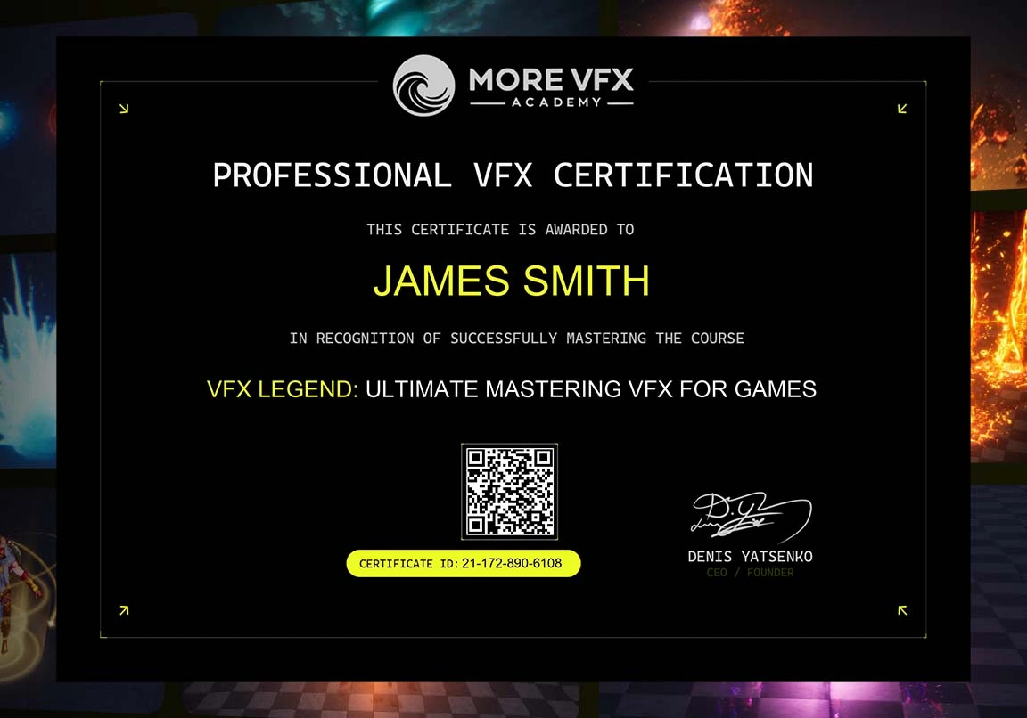 The VFX Legend: Ultimate Mastering Certification is the pinnacle of our VFX training program. This certification is awarded to those who have successfully completed the entire VFX Legend course, mastering the full spectrum of skills required to become a top-tier VFX artist. From the foundational basics to advanced techniques, this certification confirms your knowledge and professional skills, showcasing the expertise and techniques you have mastered at our school.