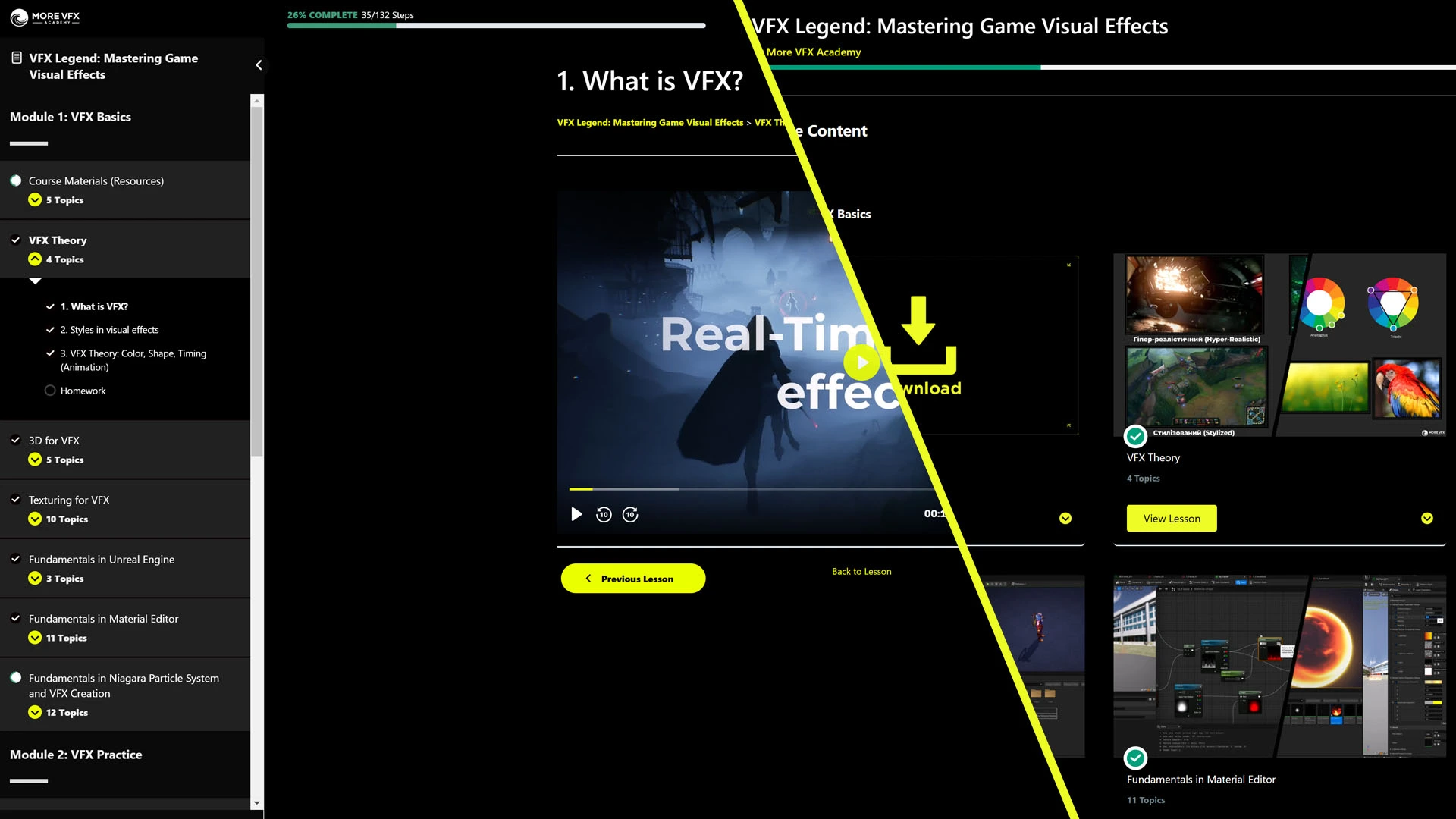 More VFX Academy is an online school dedicated to teaching the art and craft of top-tier visual effects for games. We offer comprehensive courses that cover everything from the basics to advanced techniques, helping you become a professional VFX artist.